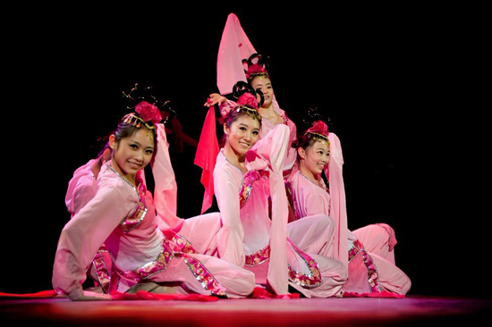 晚会以气势恢宏的古典舞《敦煌》开场,五光十色的灯光、美轮美奂的飞天造型、刚柔并济且动感十足的舞姿、富有张力的线条、完美精心的编排,这一切都生动再现了敦煌飞天的奇幻景象,给中英观众带来了真正的美的享受,也让大家领略到了北师大艺术团的专业水准。