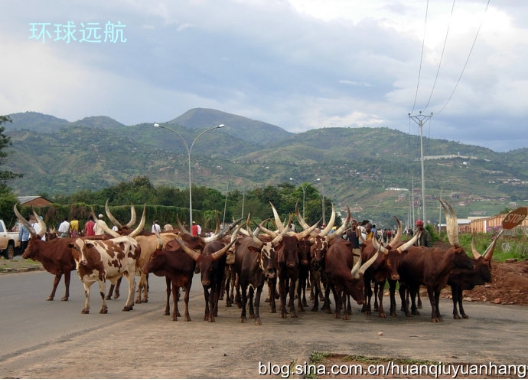 长角牛牛群在布隆迪首都布琼布拉的街上行走威风八面,我在牛群前面抓拍还真有望而生畏的感觉,匆匆忙忙的抓拍几张照片就赶紧给牠们让路了。非洲养牛不役使,牛不拉车、不干农活。养牛主要是为取得牛奶、黄油、牛肉、牛粪肥料。此外养牛还有重要的社会作用。家中牛群的大小不仅代表着主人富有的程度,还象征着社会地位的高低。有牛者受人尊敬,牛愈多愈令人羡慕。牛还是最好的礼物,尤其是订婚时男方送给女方的聘礼。偷牛是一大禁忌,一旦被发现,即判重刑。
