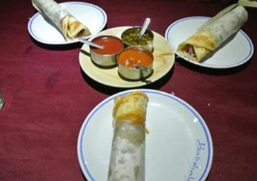 在孟加拉,在城市里大小饭店也是随处可见,一份饭菜就是一大盘。但是饭菜的种类不多,主要就是鸡肉、牛肉和羊肉咖喱、咖喱蔬菜、白饭和各类大饼,还有很多深度油炸的小吃和能把牙齿甜掉的糕点。