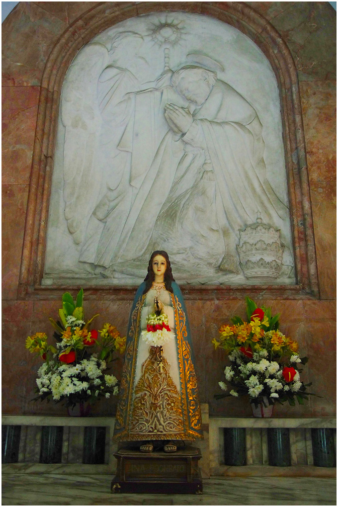 此外,天主教对菲律宾人的生活影响至深。追溯历史,由于菲律宾是个岛国,地理上分散是统治者非常头痛的事情,于是西班牙人在统治菲律宾期间,带入了天主教,利用宗教达到了他们的统治目的。菲律宾人对于这样的侵略统治带来了文化和宗教似乎没有太多的反抗,而是表示了极大地附从。面对不解,让我想到了切斯特顿的一句话:理智本身是一种信仰。它是一种确定自己思想和现实之间关系的信仰。在现实面前,的确需要自己的思想作出让步或服从。直到今天,天主教俨然已经成为菲律宾人的精神支柱。从街上来往穿梭的车辆上悬挂的耶稣像,到街角墙上的宗教标语,还有那商场里的宗教用品店,都能看到菲律宾人对天主教的狂热和依赖。在许多人的印象中,菲律宾是个落后的国家,社会问题层出不穷。但从菲律宾民众对宗教的那份虔诚之心和他们脸上始终洋溢着的笑容,我们便可看到他们对于自己的生活是充满了满足和感恩的。据世界价值民调机构一项调查表明,菲律宾人民是亚洲国家中最快乐的人。可见,真正的快乐不是生活上富足,而是心存感恩地面对每一天的生活,去发现和创造生活中的美好。知足常乐,快乐无关贫富,信仰才是生活的力量。当然,能有如此阔达的处世态度与他们一直坚持的宗教信仰无不关系。关于菲律宾的宗教前面的博文也有介绍:(菲律宾·实拍宿雾热闹非凡的圣婴节、菲律宾·行走古老宿雾,追寻麦哲伦足迹)