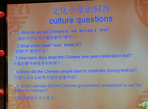 晚会结合中国的春节,主要采用了游戏和表演的方式进行,力图使学生们在做游戏的过程中学习汉语、了解中国的文化,从而达到潜移默化、润物无声的目的。