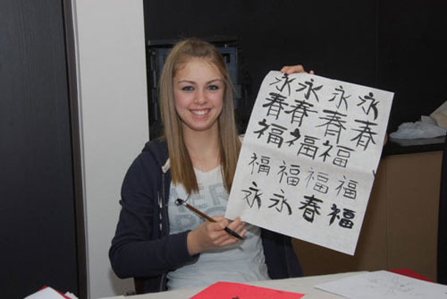 参加活动的一个叫欧苇的女生兴高采烈的表示,这个活动非常有意义,让她有机会亲自体验中国绘画和书法的乐趣,虽然刚开始学的时候,掌握到一些技巧还不容易,但是后来耐心的揣摩,逐渐可以体验到一些精妙的技巧,描绘出美丽的图画。她觉得虽然是简单的毛笔和墨,却可以在特别的纸上描绘出丰富的层次和形态,这次活动无疑对她以后欣赏中国绘画和书法也提供了非常有用的知识。同时学生们的领队涂老师也对孔子学院组办这样的活动表示赞赏和感谢,在这些丰富有趣活动的激励下,一定会有越来越多的学生来学习中文和中国文化。