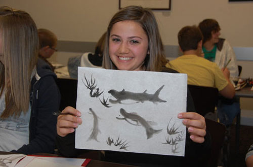 2010年2月10日星期三早上9点45分,来自Diamond Canyon School 的近五十名美国学生专程来到亚利桑那州立大学(ASU),参加由ASU孔子学院和ASU国际语言文化学院联合主办的“体验中国文化”活动。此次活动主要分为两个环节,分别为体验中国绘画和学习中国书法。学生们在参与的过程中了解中国绘画基本知识,学习国画基本技巧,感受中国书法的魅力。