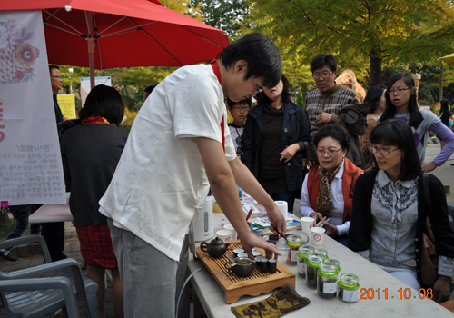 10月7日,全州市终身教育中心在全州动物园举办为期三天的全州市终身教育文化博览会,又石大学孔子学院精心准备了汉语图书展和中国传统文化体验活动。汉语图书展主要展出了汉语作为第二语言教学教材以及介绍中国文化的图书,值得一提的是,趣味性较强的汉语教材受到了游客,尤其是孩子们的极大的欢迎。本次中国文化体验主要包括中国茶文化和传统剪纸艺术,游客们通过欣赏茶道表演以及品茶的方式体验了中国的茶文化,并从中了解了中国茶的种类以及品茶习俗。游客们通过亲手制作中国剪纸,感受中国传统剪纸工艺之美,同时了解了中国过年贴窗花的习俗。在本次活动中,游客们还收到了学院老师们准备的具有中国特色的小礼物,对汉语推广工作具有一定的宣传作用。