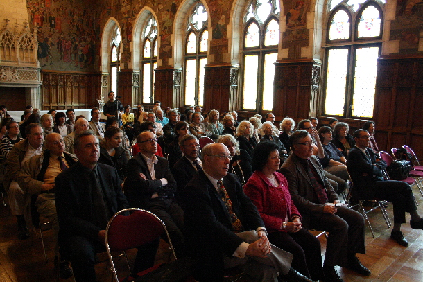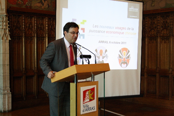 除了阿尔多瓦大学、阿尔多瓦孔子学院倾尽全力筹备此次分量十足的讲座之外,此次讲座还得到了中国驻法大使馆教育处、阿拉斯市政府、阿拉斯城市共同体、世界工商联合会、阿拉斯工商联合会的大力支持。讲座开始之前,佩文森先生在阿尔多瓦大学副校长Yannis Karamanos先生和孔子学院法方院长金丝燕教授的陪同下,饶有兴致地参观了大学校园和孔子学院。佩文森先生说他很高兴曾是金丝燕教授的学生,在法国国家行政学院听金教授的中文课。讲座于10月6日下午17点30分在阿拉斯市政府正式开始。到场的有阿拉斯市副市长Denise Boquillet女士、阿拉斯城市共同体办公室主任Dominique Marecalle先生、阿尔多瓦大学校长默哲思先生、副校长Yannis Karamanos先生、副校长Charles Coutel先生、阿尔多瓦孔子学院全体成员以及社会各界对中国有着浓厚兴趣的人士。