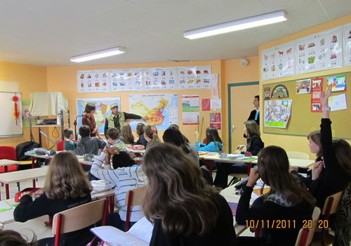 12日,在孔子学院的安排下,李昆武先生赴Saint Gabriel中学,与中学生见面,向中学生介绍了他的漫画作品,以及中国改革开放30年来的社会、经济、教育等各个方面的变化,回答了法国中学生对于中国人的生活、风俗、习惯等问题。此行受到了中学生的热烈欢迎。