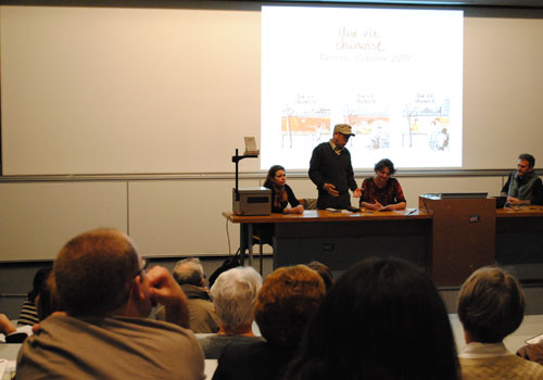 11日,孔子学院在雷恩第二大学安排了李昆武先生专题报告会。李昆武先生以他的漫画作品《一个中国人的生活——从小李到老李》为主题,通过纪录自己的人生向听众展示了一个变化中的中国。李昆武先生还特意用图片的形式,将100年前的昆明和现在的昆明作了对比,让法国朋友感受昆明的发展与变化。来自法国巴黎等不同地区的40余名听众参加了报告会,并与李昆武先生及其合作者Philipe先生进行了交流。