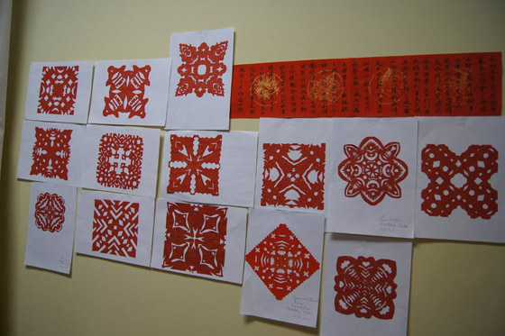 在结对活动中,科克大学孔子学院还安排了网络孔子学院现场注册、学生书画剪纸展示及中国传统乐器表演等活动。学生们拿着注册后得到的小礼物,笑意盈满脸颊。大家欣赏着墙壁上挂满的中国老师和外国学生们的书画、剪纸作品,赞不绝口,纷纷拿起毛笔和剪刀,跃跃欲试。
