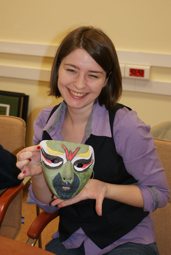 文化活动在孔子学院文化活动室进行,主持人为孔子学院教师何悠(Jonna Hiler)女士。