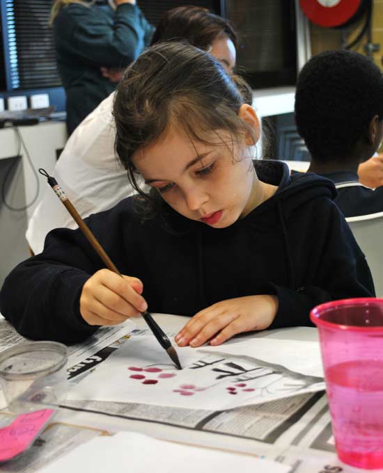 在为期四天的活动中,来自孔子学院的志愿者老师郭燕、李潇娇、卓鹰,以及孔子学院热心志愿者胡龙祥,先后来到四所欠发达地区的学校,利用学生放学后的时间,给这些地区的孩子们展示了中国书法、国画文化,并且带领孩子们亲自体验了这些在他们看来很“酷”的艺术。