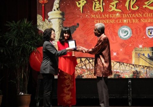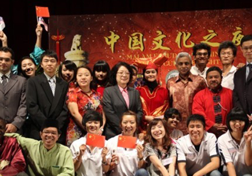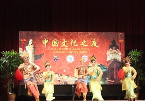 10月16日晚8点,在马来西亚大学学生综合活动礼堂举办了一场盛况空前的“中国文化之夜”活动。这也是继今年4月温总理访问马来西亚大学之后的首次大型中国文化宣传活动。来自世界各地的800多名师生齐聚一堂,整个会场座无虚席。本次活动邀请了马来西亚大学常务副校长古鲁纳坦博士(Datuk Ghauth Jasmon),中国驻马来西亚大使馆文化处主任高炜先生,北京外国语大学孔子学院工作处副处长马晓燕女士。同时,出席本次活动的领导还有马来西亚大学孔子学院外方院长阿扎拉伊博士(Azarae Haji Idris ),马来西亚大学孔子学院中方院长蒋印莲教授等。今晚的活动以文艺演出、书法和剪纸作品的图片展览、汉服和乐器的实物展现等多种形式,为大家提供了一个难得的、近距离了解中国文化,加强各国学生交流互动的机会。