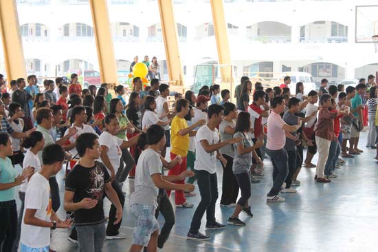 上午十点至十二点,布拉卡国立大学四位副校长身穿太极服,带领布拉卡国立大学的300余名师生,在张旭教授和中方院长李阳的指导下,配着音乐与口令,饶有兴趣的学习杨式24式太极拳。四位副校长均年过半百,但却从头到尾坚持到底。副校长还和张旭教授、李阳院长为所有师生做了太极全程示范表演。李阳院长还率领布拉卡国立大学七名学生为现场观众表演了太极扇,赢得了阵阵热烈的掌声。