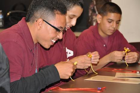 11月7日上午,ASU孔子学院为ASU 附属中学组织了中国文化体验课程,为刚开始学中文的中学生提供一个绝佳机会亲身体验画中国水墨画和编中国结。ASU附属中学包括西校区和菲尼克斯校区,共有来自这两个校区的70多名学生参加了此次活动。他们在中文老师的带领下,兴高采烈的来到ASU 的MU大楼指定的教室。