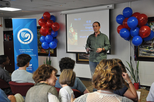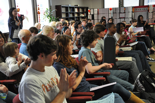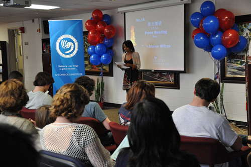 原来这是GSU孔子学院2011年秋季学期中国语言文化系列比赛之一的“中华才艺”比赛。比赛一经宣传,便得到了GSU孔院非学分课程学生、GSU中文学分课程学生,以及亚特兰大本地高中生的积极报名和广泛参与。北亚特兰大高中(North Atlanta High School)的学生更是专程组队前往参赛,还有许多学生带了家人和朋友前来助阵。