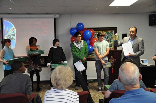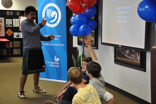 佐治亚州立大学孔子学院院长顾宝桐为获奖选手颁奖