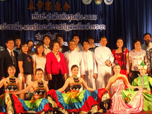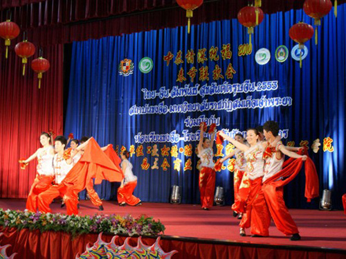 2月11日,易三仓商业学院大礼堂洋溢着喜庆祥和的气氛。曼松德·昭帕亚皇家师范大学孔子学院与易三仓商业学院孔子课堂携手,成功举办了“中泰情深,祝福2010,春节联欢会”,天津师范大学津沽学院演员与易三仓商业学院的学生共同献上了一台异彩纷呈的演出。800余名来自曼谷地区的各校师生及社会各界人士齐聚孔子课堂,欣赏了演员们的精彩表演。易三仓商业学院校长苏拉实修士对艺术团的到来表示感谢,并希望孔子学院与课堂的合作能够更上一层楼。