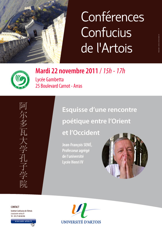 11月22日下午,阿尔多瓦孔子学院在甘必大中学举行了一场题为“中西诗歌相遇”的孔子讲座。此次邀请到的讲座人为亨利四世中学的让-弗朗斯瓦•赛讷(Jean-François Sené )老师。亨利四世中学在法国享有盛誉,该中学的教学软件与硬件设施堪称法国中学之首。它所培养的中学生大部分都能在中学毕业会考之后进入法国最好的高校。