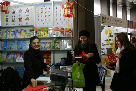 书展上,索非亚孔子学院展出了汉办赠书和孔子学院资助出版的图书,包括保语版汉语教材、汉语工具书、HSK考试大纲、中国思想文化著作等图书。