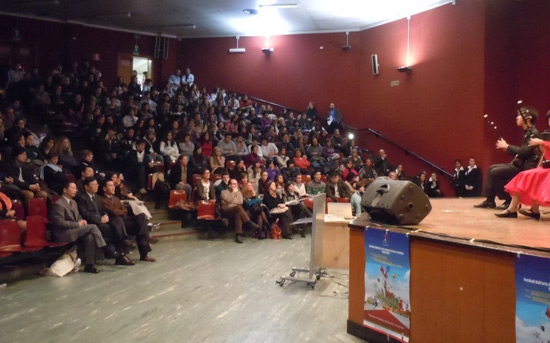联欢会开始前,会场里就已坐满了观众,他们中不仅有伦巴第大区学习汉语的高中生,也有学习法语、德语等语言的学生,特别是一些高中的校长也来到了活动现场,和学生、老师们一起欣赏了这台演出。