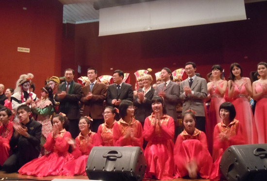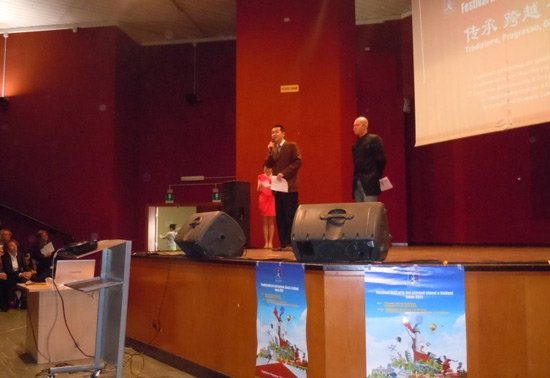 联欢会一开始,主持人就调动起了全场的气氛。首先,伦巴第大区教育厅的Langè处长,米兰总领馆的赵向东领事,演出团团长、北京师范大学校委会副主任王炳林教授分别发表了热情洋溢的讲话。他们都感谢这次活动的主办方、承办方,并预祝这次联欢会圆满成功,他们共同期望通过这次活动,中意两国青少年之间的友谊更加深厚!嘉宾席里坐着的还有米兰总领馆的严华龙副总领事、米兰天主教圣心大学孔子学院中方院长李德钧、米兰国立大学孔子学院中方院长金志刚。严副总领事、赵领事与演出团、大区教育厅方面进行了热烈会谈,对活动的举办给予了高度的赞扬。