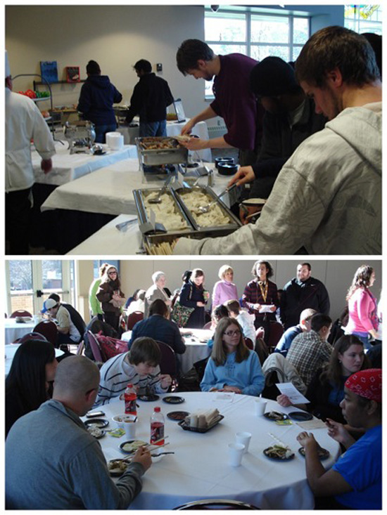 12月1日圣文森孔子课堂下属的匹兹堡大学格林斯堡分校(以下简称UPG)的志愿者朱宇丹老师经过精心筹划带领中文课堂学生们共同努力成功举办了第一届中华美食节活动,第一次向UPG全校师生展现了丰富的中国饮食文化。据统计有一百五十人参加了此次活动。