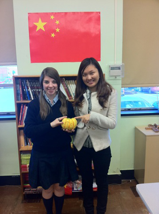 十月底的万圣节,美国人用各种活动来欢庆这个有趣的日子。任教于Valley School的志愿者杨苑老师与学生共同合作制作了一个中国古典美女稻草人,代表学校参加该地区一年一度的稻草人比赛。在稻草人展出期间,许多人经过时都驻足观赏并拍照留念。当地居民表示,这是他们第一次看到中国稻草人出现在这里,很特别很漂亮。任教于圣约瑟夫天主教高中的志愿者刘腾老师则将学习汉字与刻南瓜灯结合起来,带领学生们刻出了许多中国南瓜灯,学生们表示今年的万圣节会把这个不寻常的南瓜灯摆放在家门口,向邻居们展示自己的中国字。