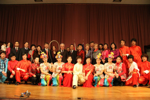 首场演出于2月8号在昂热市举行,由法国卢瓦尔孔子学院协办。1个多小时的演出让法国观众看得如醉如痴。在现场观众的热烈掌声中,全体演员再次登台演唱了一首著名的法国歌曲,现场的法国朋友激动地与台上的演员一起合唱,雷鸣般的掌声经久不息。副市长通宝女士上台献花,向演出成功表示热烈的祝贺。首战告捷之后,演出团马不停蹄赶往下一站斯特拉斯堡,在阿尔萨斯孔子学院的协助下参加2月9日中国驻斯特拉斯堡总领事馆举办的各国使节春节招待会。各国驻欧洲议会外交使团代表,各国驻斯特拉斯堡总领馆代表,阿尔萨斯大区议会、省政府、市政府要员及法国社会各界代表等600多人参加。中国驻斯特拉斯堡总领馆孙继文总领事在致词中对各位嘉宾及演出团表示欢迎。演员们的精彩表演成为当晚的最大亮点。巡演团还赴米卢兹市、科尔玛市、贝赞松市、为当地民众献上了年味十足的精彩演出。法国阿尔萨斯大区议会副主席、阿尔萨斯孔子学院理事会主席海德尔先生多次到场发表讲话,多位法国市长等政府要员观看了演出。随后,在图卢兹孔子学院和拉罗谢尔孔子学院的协助下,巡演团赴法国各地进行了精彩的表演,举办了多场中医保健知识讲座,展示了中国书法,受到热烈欢迎。