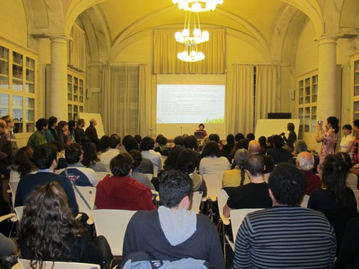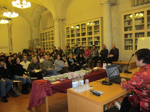 经过精心准备,12月7日下午五点,活动在圣安娜大学大礼堂Aula Magna Storica正式开始。比萨孔子学院中方院长黎静教授致开幕词并发表了热情洋溢的讲话。她首先欢迎了到场的所有意大利朋友,然后黎院长对比意大利的红酒文化,介绍了中国茶文化的悠久历史和深远影响,并预祝活动取得圆满成功。