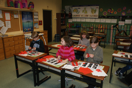 此次中国文化活动按照年龄大小分为小班进行,中国剪纸活动和认识汉字及汉语书法由何悠老师(Miss Joanna Hiler)和古乐燕老师(Miss Kamila Wiatr)同时分别主持。