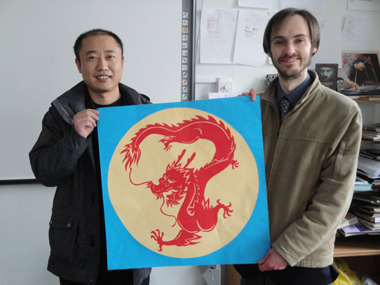 龙在中国传统文化中有着极其深厚的文化内涵,David属龙,今年正好是龙年,所以他非常喜爱《中国龙》的剪纸,把它挂在自己的教室,和学生一起分享自己的快乐。