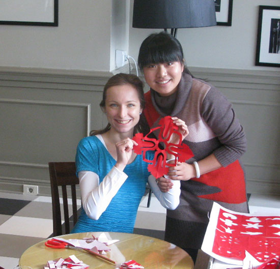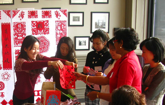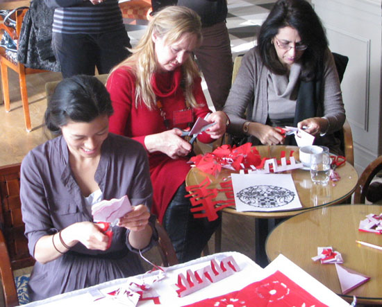 新年伊始,2012年1月10日,吉尔吉斯国立民族大学孔子学院教师佟毅受法国驻吉尔吉斯斯坦大使夫人Alevtina 女士的邀请,向比什凯克国际妇女俱乐部的女士们介绍中国剪纸艺术。
