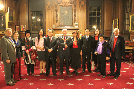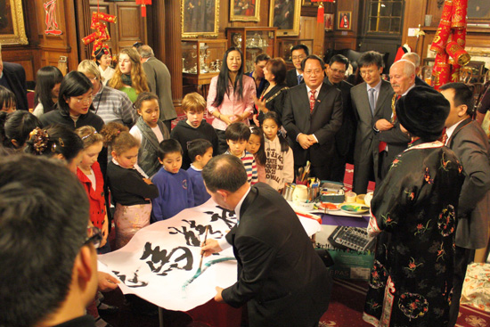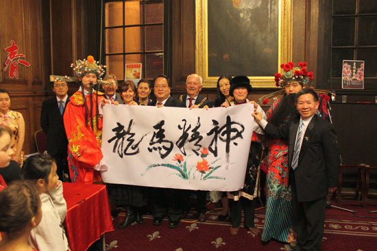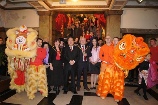 2012年1月16日,英国兰卡斯特市政府二楼大厅灯笼高挂,喜气洋洋。由兰卡斯特华人协会华贤社主办、兰卡斯特大学孔子学院协办的新春联欢晚会在这里举行。中国驻英国曼彻斯特总领事馆总领事潘云东先生携夫人朱宇女士,兰卡斯特市市长Paul Woodruff先生、首席执行官Mark Cullinan先生、副市长Keith Sowden先生及各界友人150余人出席了此次活动。