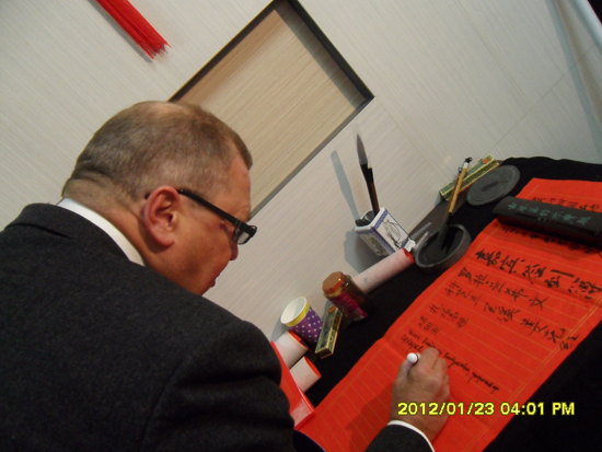 具有中国特色的“签到簿”,让中外人士都颇感新奇。不论是用毛笔还是签字笔,不论是竖写还是横写,嘉宾们都认认真真地签上自己的名字,写下了新年的祝愿。中西文化在欢乐的中国年中得到了完美的融合!