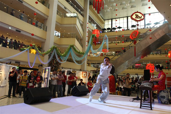 晚上六点,欢快活泼的舞狮表演拉开了开幕式的序幕,开幕式剪彩结束后,进行了中国歌曲表演,购物广场上千名观众被欢乐的气氛吸引,纷纷前来观看。表演结束后,来宾们观赏了“亚典耀大学孔子中国画作品展”。本次展示的画作除了孔子学院师生的作品以外,还展出了著名画家施荣宣的作品,展品件件优美,前来观看的社会各界人士深赞中国画美不胜收。画展将从1月20日持续至1月29日,全天开放。