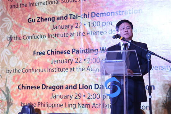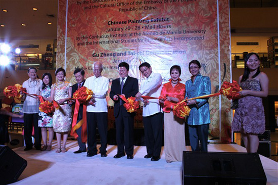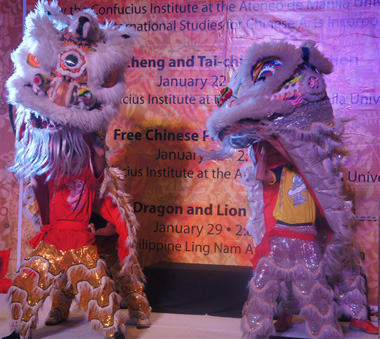 2012年1月20日,菲律宾亚典耀大学孔子学院在马尼拉香格里拉购物广场举办了春节系列庆祝活动开幕式,中国驻菲律宾大使馆文化馆潘峰参赞出席开幕式并发表了讲话,同时出席开幕式剪彩仪式的还有亚典耀大学前校长Fr.Bienvenido F. Nebres、现任校长Fr. Jose Villarin、社会科学院长Fr.Jose M. Cruz,邝立铭先生和夫人、国际中国艺术研究会黄人杰会长、香格里拉经理Ms. Lala Fojas、亚典耀大学孔子学院外方院长Dr. Ellen Palanca及中方院长刘小芳等为新年庆祝活动剪彩。此外,印度尼西亚、俄罗斯等各国驻菲律宾使馆官员,菲律宾各界人士,孔子学院师生等300多名嘉宾出席了开幕式活动。