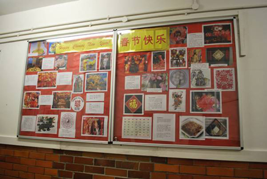 在2012春节来临之际,林肯克雷斯特学校份外热闹,校园墙上的中国春节传统知识介绍,以及生动形象的图片展示,吸引了许多学生前来参观, 同时也向学生们宣告:2012龙年春节来了!