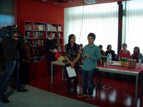 11点,孔子学院外方院长达尼叶拉女士向现场嘉宾用中文祝贺新年,并回顾了孔子学院两年来的发展历程。汉学系教师SaSa女士详尽地介绍了中国春节的由来以及龙在中国文化的意义。