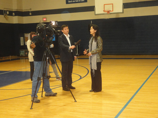 三巡团于2月1日下午到达达拉斯,2月2日早上5点就起来化妆,6点出发到HEB学区的中心中学,位于所在的学区两所孔子课堂学校之间,方便三校学生观看表演。演员们没有得到足够的时间倒时差,也没有很好地休息,为了传播中国文化,他们克服困难,不顾疲劳,毅然地开始了第一天的演出。在乔纳森•詹姆斯校长亲自现场安排下,8:30表演准时开始,500多名中学生挤坐在体育馆的座位上,饱尝了中国文化的精神食粮。多姿多彩的新疆舞诙谐幽默,让大家感到甜蜜;中国武术雄浑刚劲,获得阵阵喝彩声;中国民歌优雅动听,使学生们随着节奏附和;绕口的汉语让美国学生也想练练口技。众多的精彩节目和艺术团的精湛表演让美国主流社会的师生惊叹,尤其是京剧变脸使美国学生大开眼界。演员与学生的互动更是激起了美国孩子的极大兴趣。外经贸大学副校长陈建香教授和学区总监杰因•布恩吉博士到场观看,并接受了当地电视新闻4台、5台、33台的现场采访。双方就学习汉语、相互交流、与孔子学院合作、建好孔子课堂等话题发表了各自的积极看法和褒扬。