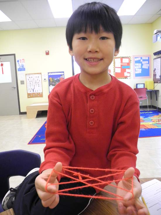 因为是中国的传统节日,老师们为孩子们准备了很多充满中国特色的民间游戏活动,翻绳,七巧板,手工灯笼等等。