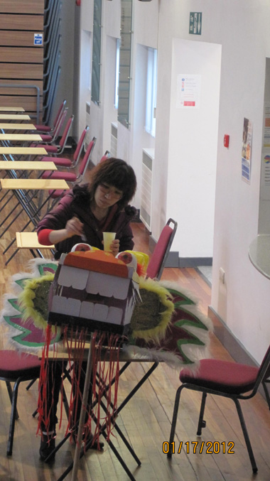 在英格兰北方重镇达灵顿,由学生表演舞龙舞狮来庆祝新年的历史已有四年之久。今年,我们的孔子课堂更是特地从附近的纽卡斯尔市请来了专业的教练教授学生表演舞狮舞龙。教练耐心地一遍又一遍为学生们讲解和演示,学生们认真地侧耳倾听并刻苦地反复练习。虽然只有短短一天的训练时间,但是在师生的共同努力下,每位学生都了解和学习到了舞狮表演中狮子出洞(狮子从沉睡中苏醒,探头探脑左顾右盼)、寻食(狮子做出各种巡视的动作)、见食、探食(狮子在食物前舞数回, 表现犹豫,还要尝试各种动作来探寻食物)、采食、碎食(吃掉并吐出食物)、致意等各种动作。此外,为确保舞龙表演的顺利进行,孔子课堂的师生们利用课间及放学后的时间,重新对学校的龙进行休整,加固龙身、重新上色,经过一个星期的努力,本已破旧不堪的龙又恢复了原有的雄姿。