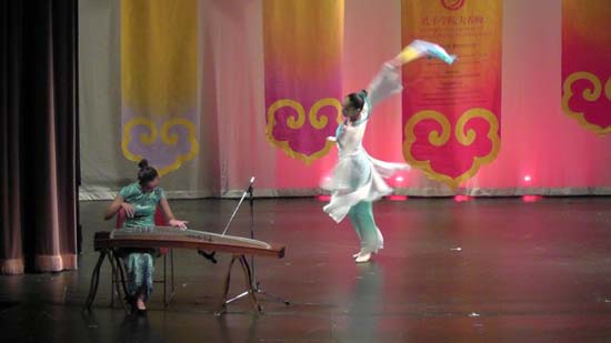圣地亚哥州立大学孔子学院和本地华人华侨社团为此次巡演做了大量的准备工作,华界首领分别设宴为巡演团全体师生接风和答谢,宾主互赠了礼物并合影留念。席间,侨领彭应吉、余建强、廖中强等先生和传媒界卢非女士慷慨激昂地演唱了《我的中国心》和《我爱你,中国》,饱融着海外华人华侨的殷殷思乡情、拳拳爱国心,两次宴会始终洋溢着真情、乡情与爱国情。