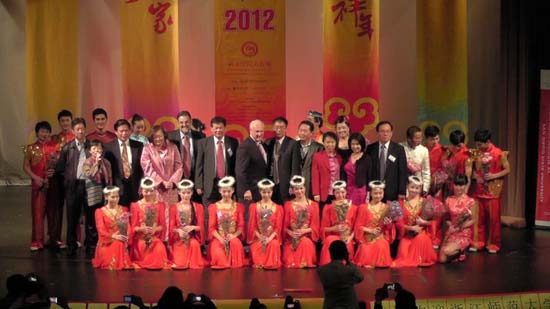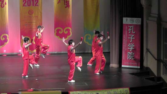 晚会在《雄狮贺新春》的喜庆锣鼓声中拉开了帷幕,象征着吉祥如意的两只瑞兽表演了戏球、挠痒、舔毛、打滚、跳跃等风趣逗人的动作,寄托了人们消灾除害、求吉纳福的美好意愿;音乐舞蹈《挂红灯》惟妙惟肖地表现了中国人民逢年过节张灯结彩的喜庆习俗;民乐三重奏《彩云追月》以其轻快独特的风格、写景抒情的手段、和谐圆融的旋律,为观众呈现了云月相逐、相映成趣的幽淡夜空;《剑胆琴心》独具创心地将武术、舞蹈、古琴、书法融为一体,展现了中国传统文化的形式多样性及内在相关性,将观众带进了一片安详清幽的和谐意境;被联合国科教文组织评为世界25首优秀民歌之一的《龙船调》节奏自由,腔调高亢,将晚会推入了高潮,歌颂纯洁爱情的民歌《茉莉花》和《敖包相会》用音乐的语言向观众生动地呈现了中华民族的婚恋习俗,歌唱家优美的歌声和深情的表演,博得了观众阵阵喝彩;刀术表演《凌云壮志》勇猛快速、游刃自如,徒手与棍棒表演《少林小子》踢打交错、摔拿相济,捣劈神速,攻防有度,激起了台下掌声雷动,经久不衰……演出结束后,嘉宾、侨领、孔子学院管理院长刘丽容教授上台向演员致谢并与巡演团全体成员合影留念。