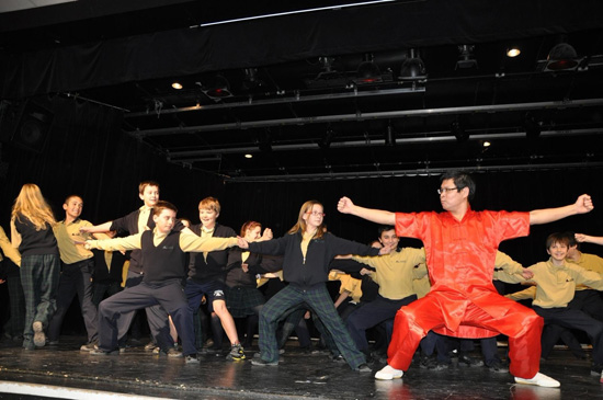 文艺演出精彩绝伦,分成了七个场次,其中方言心老师大珠小珠落玉盘的琵琶,税寒青老师柔中带刚的太极扇,顾婷婷老师具有民族特色的傣族舞蹈,植梅老师的优美书法,梁涛老师的刚劲有力功夫,夏天老师的围棋讲解等,一次次的赢得了学生们的喝彩。在每场演出开始前学生们都会用“你好”来问候,并在演出结束时用“谢谢”来表达感谢。