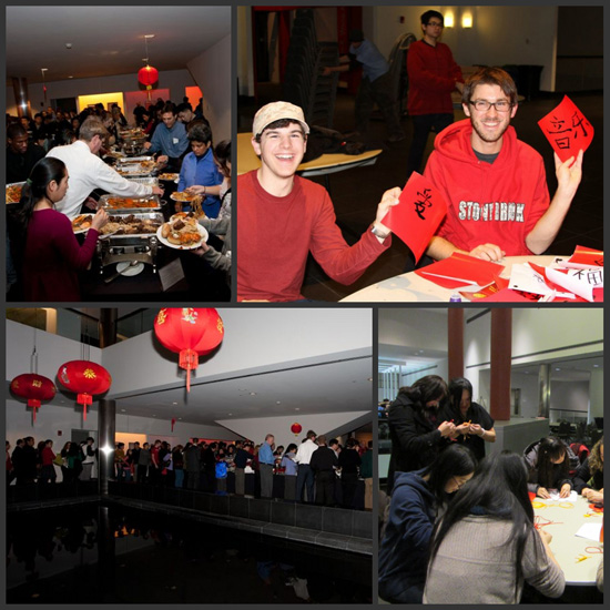 中国农历龙年春节到来之际,纽约州立石溪大学孔子学院于2012年1月23日举办了大型庆祝活动,超过600名石溪大学师生和当地社区居民共度中国传统佳节。中华人民共和国驻纽约总领事馆教育组王盈领事及夫人、石溪大学教务长Dennis N. Assanis及夫人、石溪大学校长夫人Dr. Li、石溪大学相关职能部门和院系领导、长岛地区有关社团领袖等贵宾出席了本次活动,纽约州立大学其他院校的师生代表应邀参加。石溪大学孔子学院龙年春节庆典活动分为三个部分:文艺演出、春节招待会和新春游艺活动。