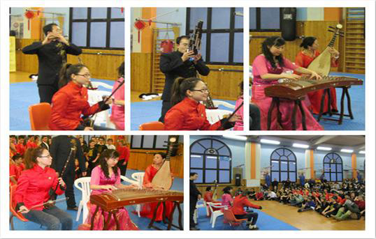 看着古筝、二胡、琵琶等一件件中国传统乐器被摆放在舞台上,台下的观众情绪高涨。四位来自河南省高校的民乐演奏家向观众介绍了中国的传统乐器,同时还演奏了几首具有代表性的乐曲,以加深观众对乐器的认识。随后,四位演奏家演奏了经典的中国民乐“金蛇狂舞”和意大利民乐“桑塔•露琪亚”。他们精彩的表演给每一位观众都留下了深刻的印象,观众们都起立热烈鼓掌。