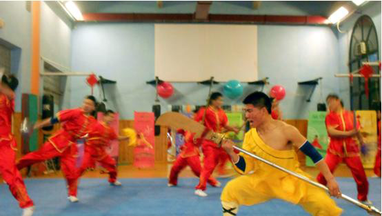 功夫表演者一改他们严肃而刚毅的风格,表演了鹰爪拳、猴拳、蛤蟆拳、虎拳和蝎子拳。他们生动的表情与精湛的武艺让现场观众不时爆发出热烈的掌声和笑声。一位孔子学院的学生说:“没想到少林功夫这么有趣。”