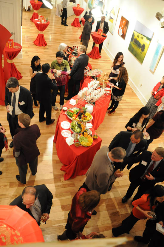 2012年2月11日晚,北卡州大孔子学院在罗利市中心的马勒美术画廊举办了盛大的中国新年招待会。许多当地的企业和教育机构代表应邀来到这里,一起欢庆龙年的到来,庆祝中美两国持续稳定的伙伴关系。拥有17个分校的北卡大学总校校长Thomas Ross先生,北卡大学教育董事会Atul Bhula先生和橙郡公立学校总学监Patrick Rhodes 等贵宾出席了招待会。其间北卡州大副校长Warwick Arden博士、 国际事务副教务长李百炼博士和孔子学院副院长林安娜女士分别向来宾致欢迎词,并介绍了在这个特殊的节日,社会各界欢聚一堂,共同庆祝的重要性。在招待会 上,专业的古筝手和琵琶手演奏了中国传统民间音乐,为来宾营造了一个温馨的节日气氛和交流环境。一位专业的书法家也被邀请到了招待会现场,为来宾展示中国 书法并将书法作品作为礼物赠送给了书法爱好者。200位左右的来宾参加了招待会,很多第一次尝试中国的点心的客人,交口称赞点心的外观和味道。