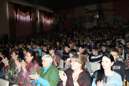 2月13日下午,能够容纳600人学校大礼堂里座无虚席。观看演出的有阿穆尔国立人文师范大学的校长、教师、当地大中小学生和中国留学生以及对汉语感兴趣的市民。
