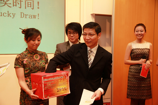 廖力强大使在抽取一等奖
