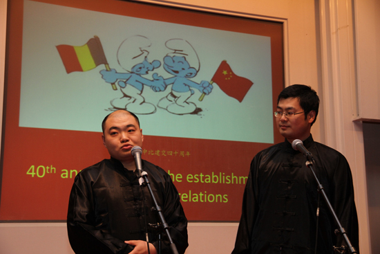 廖力强大使在致辞中给大家拜年,介绍了龙年的特殊意义,并祝愿中比友谊长存。巴拉特副校长代表鲁汶大学向在座的中国人表达新年的祝贺。孔子学院比方院长白伟恩的中文祝辞“兔年蹦蹦跳,龙年和谐跑,钱少不用愁,健康最重要”,幽默诙谐。